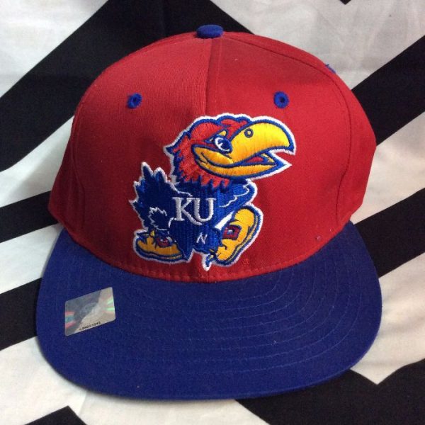 Baseball cap, Kansas State University, snap-back, Jayhawkers bird embroidered design, blue/red/yellow