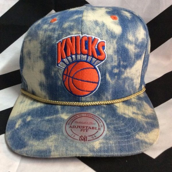 Baseball cap, New York Knicks, tie-dye bleached, puffed embroidered design, snap-back, blue/white