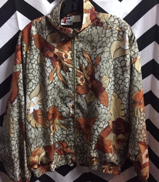 HAWAIIAN PRINT WINDBREAKER W/CRACKLE FALL FLORAL PRINT