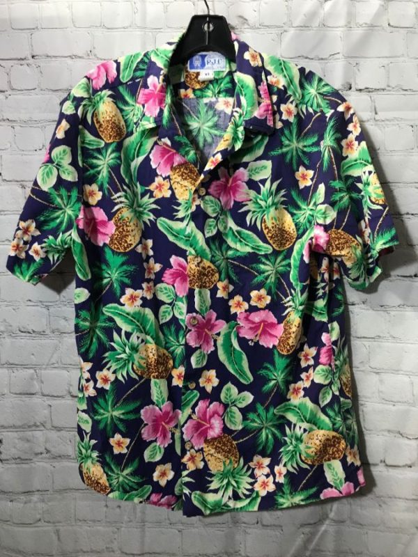 HAWAIIAN SHIRT W/ PINEAPPLE FLORAL PRINT