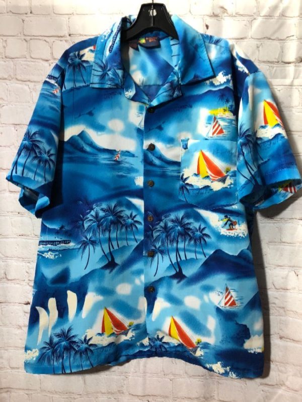 HAWAIIAN SHIRT W/ SURFERS/BOATS/ISLAND PRINT