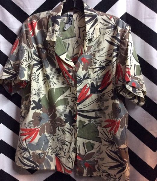 AS-IS AWESOME FLORAL PRINT HAWAIIAN SHIRT W/ WOODEN BUTTONS