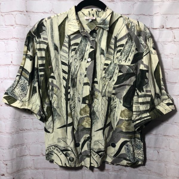 HAWAIIAN SHIRT W/ PALM FRONDS/LEAF & ITALIAN LABELS PATTERN W/ FRONT POCKET