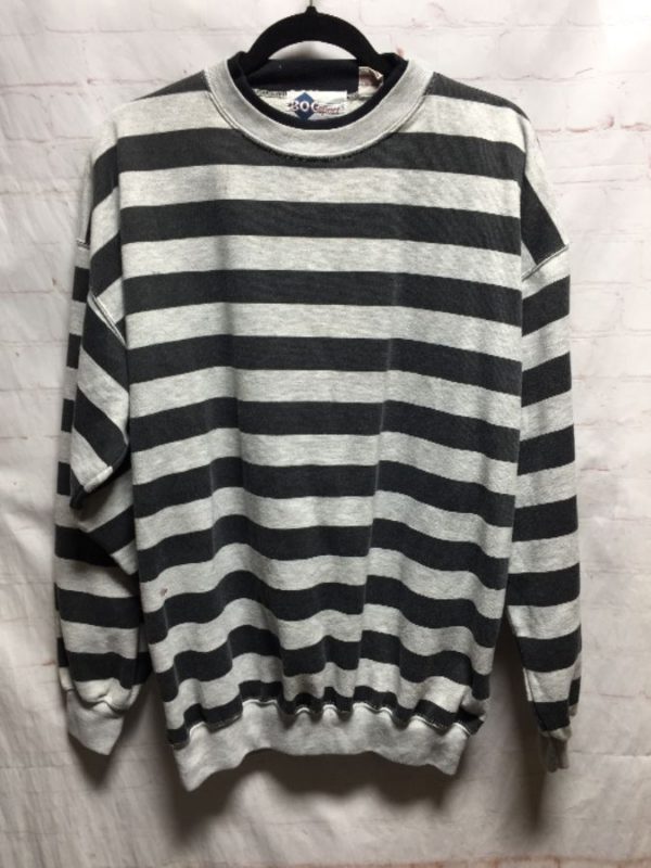 HORIZONTAL STRIPED RINGER CREW-NECK PULLOVER SWEATSHIRT
