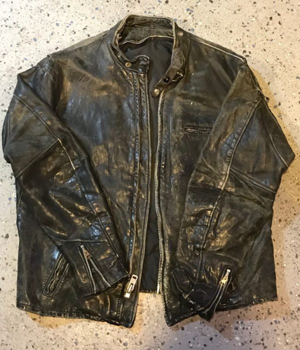 HEAVILY DISTRESSED LEATHER CAFE RACER MOTORCYCLE JACKET W/ RIDE TO LIVE PATCH