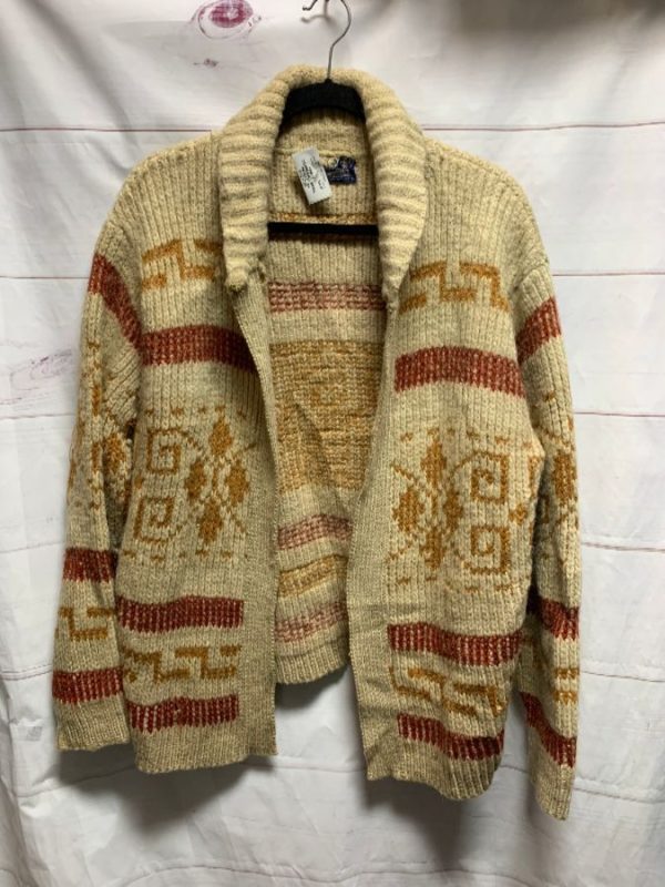 BRAND: PENDLETON COLOR: BEIGE TAN ORANGE RUST SIZE: L MEASUREMENTS: FITS MORE LIKE A MEDIUM CONDITION: SHRUNKEN, HOLES AND DAMAGE THROUGHOUT, MISSING ZIPPER