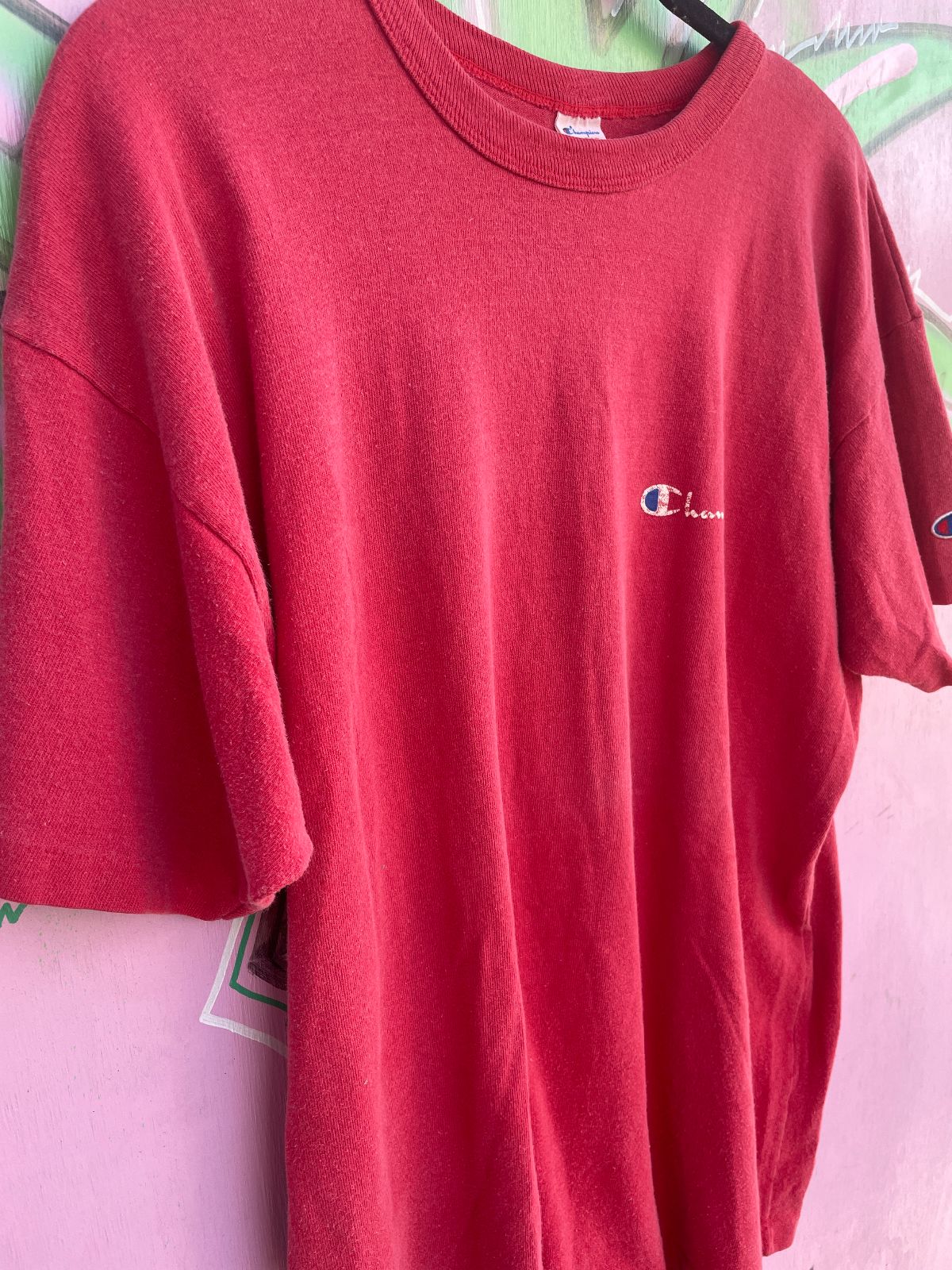 HEAVY 100% COTTON FADED RED CHAMPION SINGLE STITCH T-SHIRT