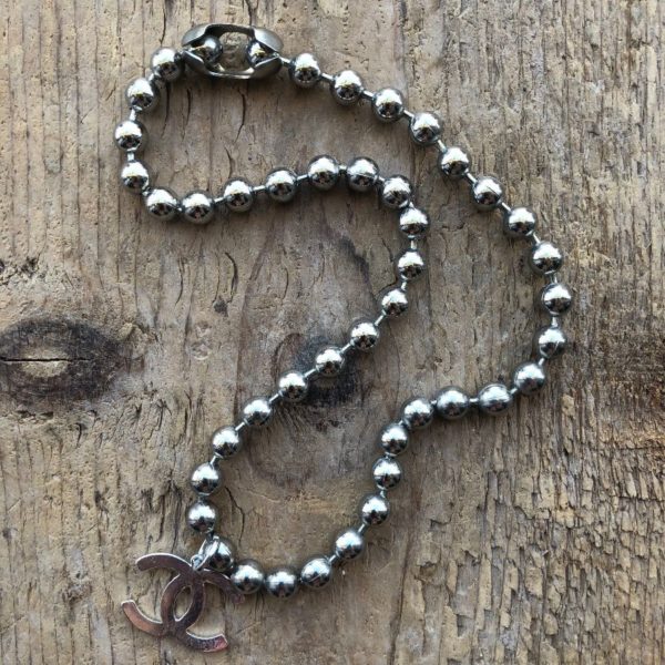1990’s Mktprice choker necklace, Chanel logo pendant, heavy dog collar ball-chain, nickel, one size