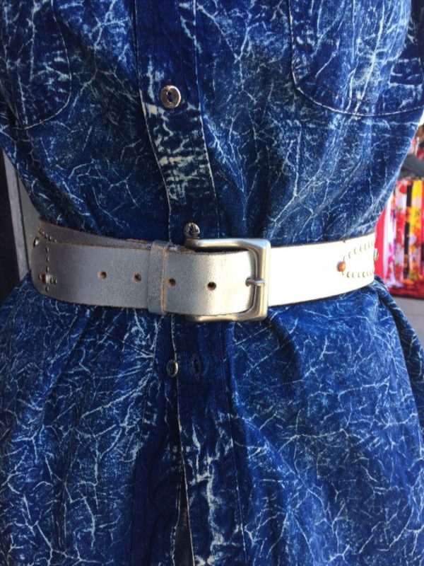 WIDE ETCHED LEATHER BELT CUT TIP AS-IS