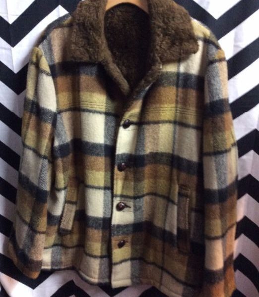 FLANNEL JACKET – HEAVY – PLAID DESIGN – FAUX FUR COLLAR – LINED