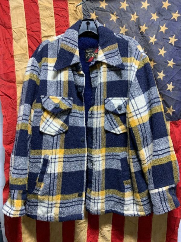 1970S BOXY 100% WOOL BUFFALO CHECK HEAVY FLANNEL SHIRT JACKET