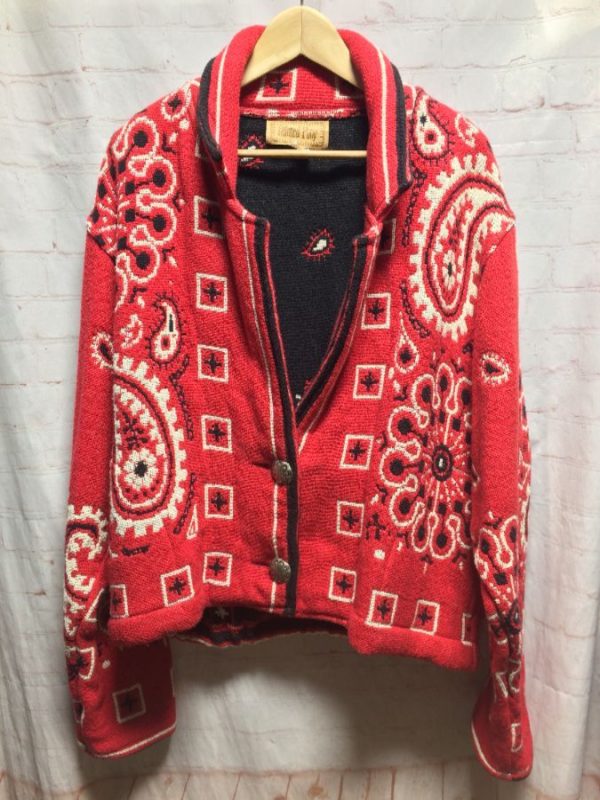 HEAVY SOFT 100% COTTON WEAVED PAISLEY PRINT JACKET BIG SILVER CONCHO BUTTONS
