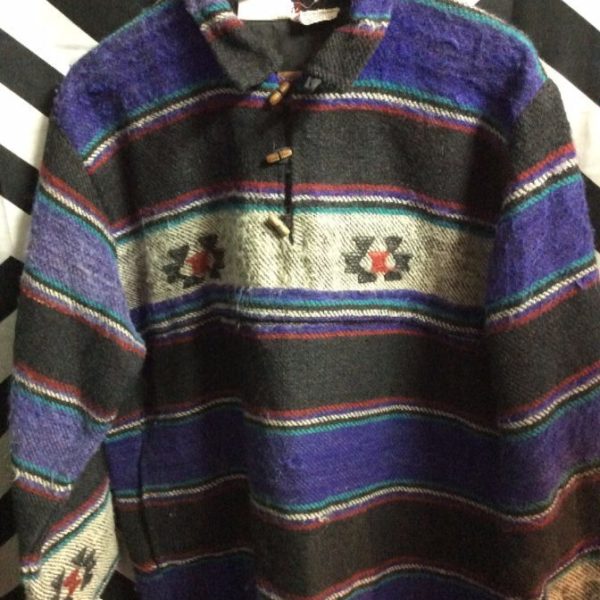 HEAVY WOOL PULLOVER ETHNIC JACKET FRONT ZIPPER
