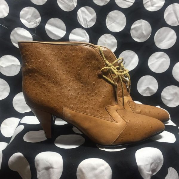 HEELED & POINTED LEATHER LACEUP ANKLE BOOTIES OSTRICH LEATHER POINTED TOE – AS IS