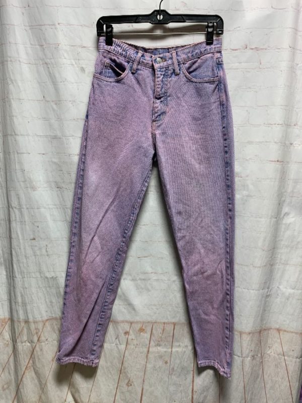 VINTAGE 1980S DARK PLUM ACID WASH COTTON TWILL TAPERED LEG STIRRUP STRETCH DENIM PANTS