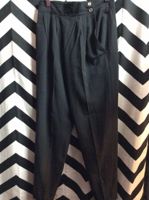 TROUSERS, PLEATED, 2 SIDE BUTTONS, HIGH WAIST, BLACK, SIZE 6
