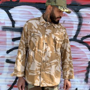 MILITARY JACKET BUTTON UP SAND CAMO PRINT WITH BRITISH FLAG PATCH
