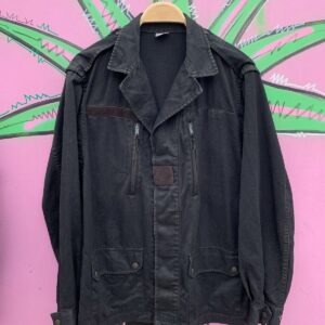 LIGHTWEIGHT OVERDYED HERRINGBONE ZIP-UP MILITARY ISSUED JACKET FRONT ZIPPER POCKETS