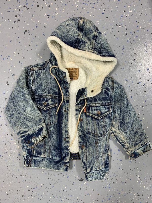 RARE VINTAGE HOODED KIDS LEVIS DENIM JACKET SHERPA LINED ACID WASH LEVIS