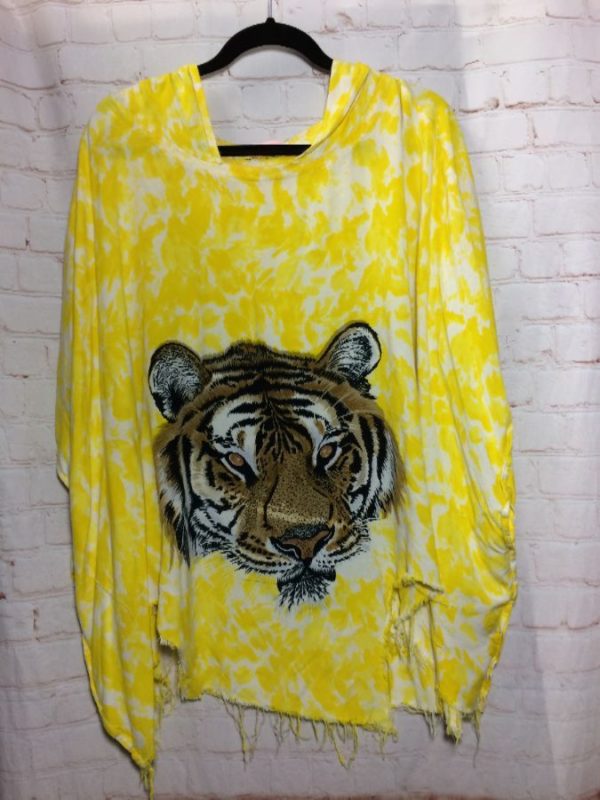 HOODED TIE-DYE PONCHO TOP W/ MULTIPLE LARGE TIGER GRAPHIC DESIGNS