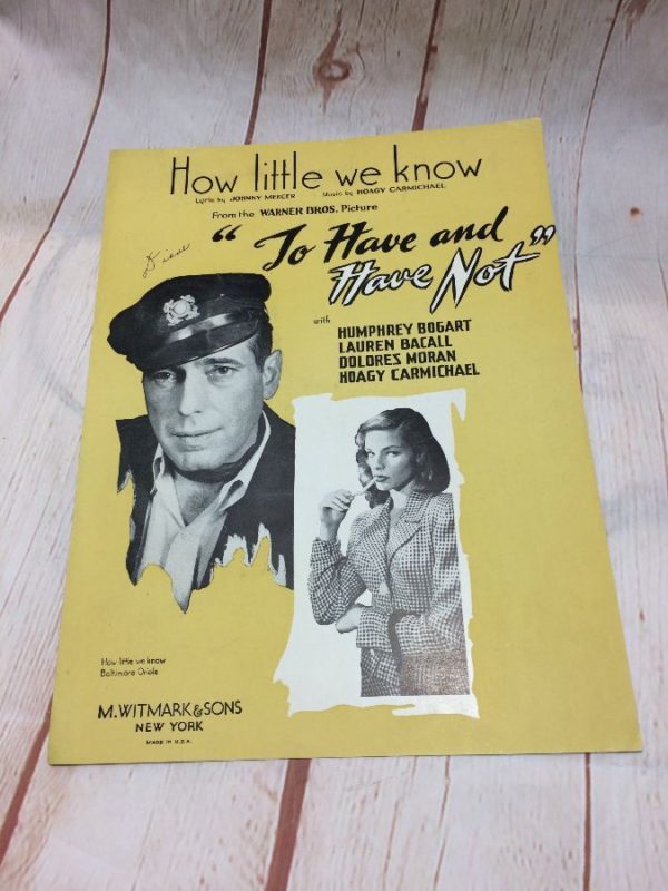 Sheet music, Humphrey Bogart & Lauren Bacall, How Little We Know, To Have & Have Not