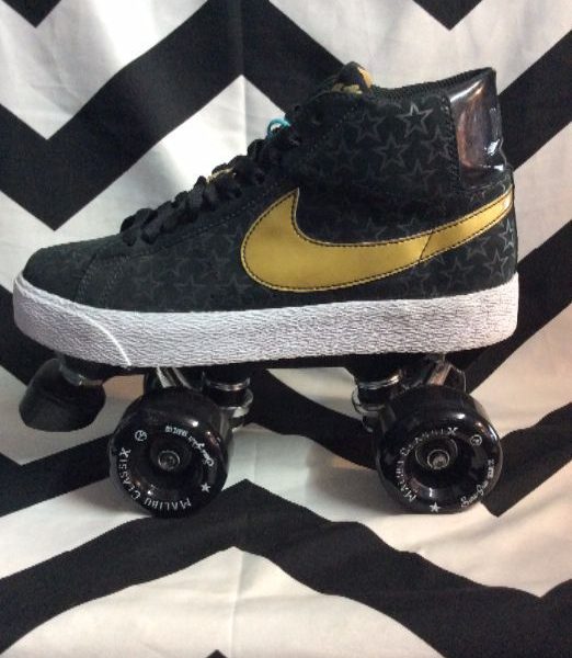 Nike roller skates, hybrid sneakers, local designer, black/gold