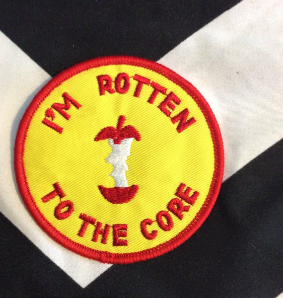Vintage patch, I’m Rotten To The Core, embroidered, dead-stock, yellow/red