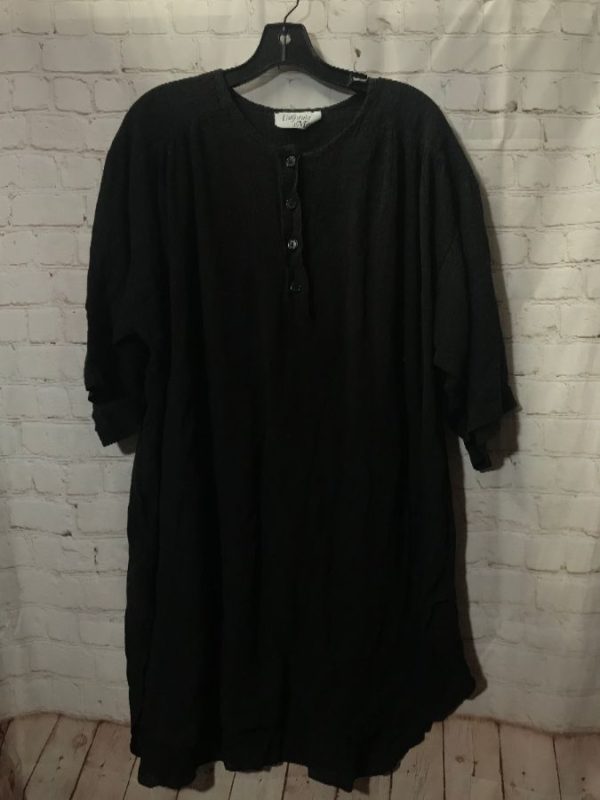 California Miss beach tunic, pullover, cotton, long sleeves, 4 button-up neck, made in India, black, size 14/16