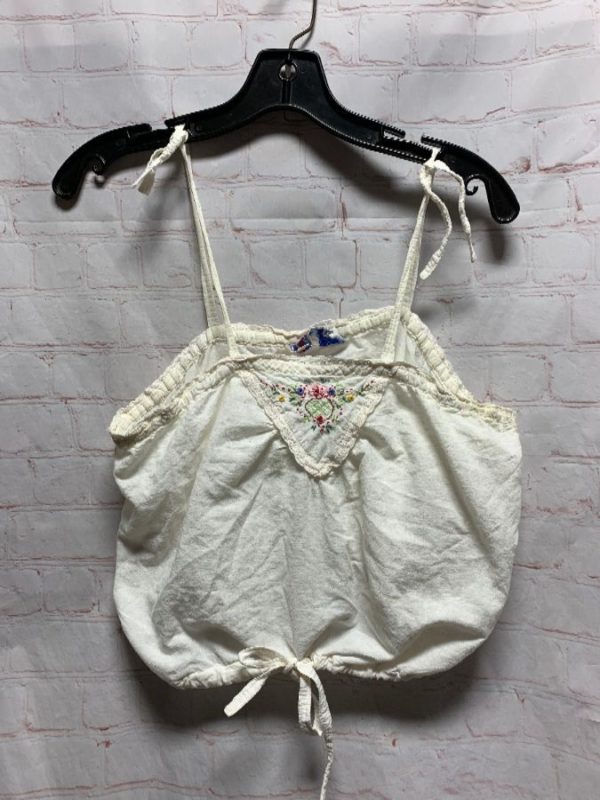 INDIA COTTON TOP W/ EMBROIDERY & TIE STRAPS