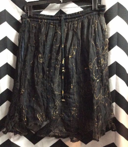 Skirt, mini, sheer, metallic paint print, made in India, black/gold as is