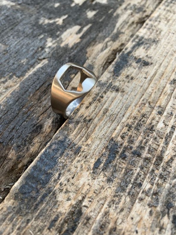 RING, LITTLE BOTTLE OPENER, INDUSTRIAL STEEL, SILVER, SIZE 15