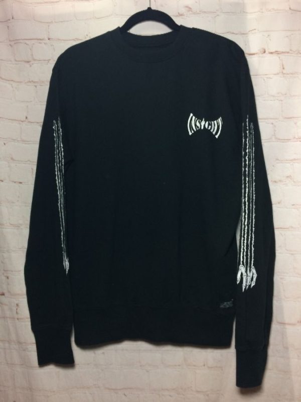 Insight sweatshirt, pullover, screen printed small designs, left chest logo, large back logo & skull graphic, scratch marks with skeleton fingers design down sleeves, black/white, size S
