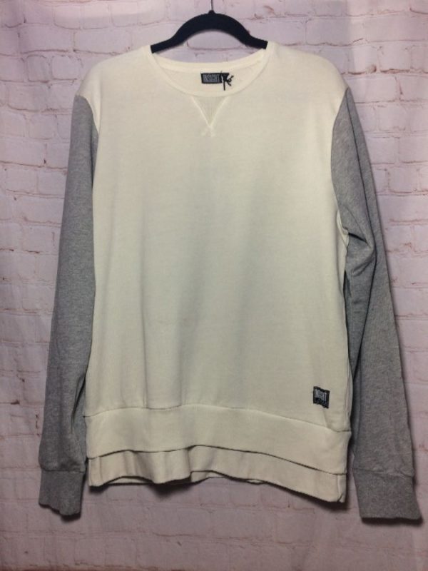 Insight sweatshirt, fleece, pullover, long sleeves, crew-neck, two toned, logo patch, white/gray, size L