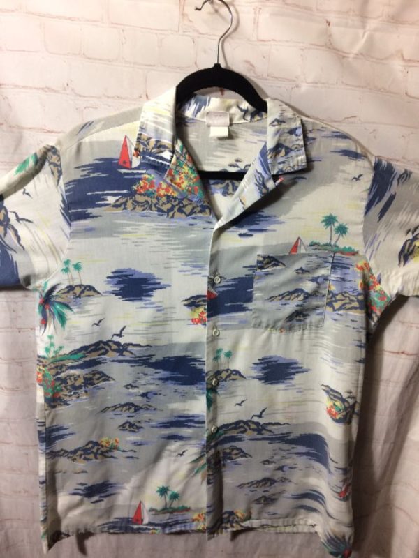 SAILBOAT/PALM TREES/ISLANDS PATTERN HAWAIIAN SHIRT