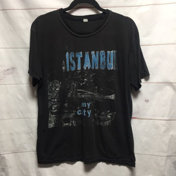 T-shirt, soft, super thin, Istanbul, My City, screen printed front graphic, perfectly distressed, holes, black/blue, size S