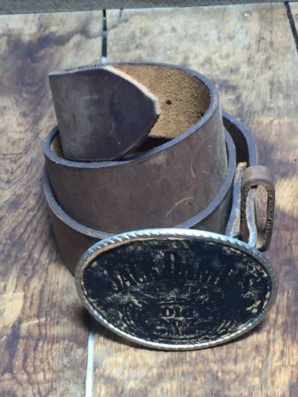 JACK DANIELS OVAL BUCKLE W/ EMBOSSED LEATHER INLAY & GENUINE LEATHER BELT