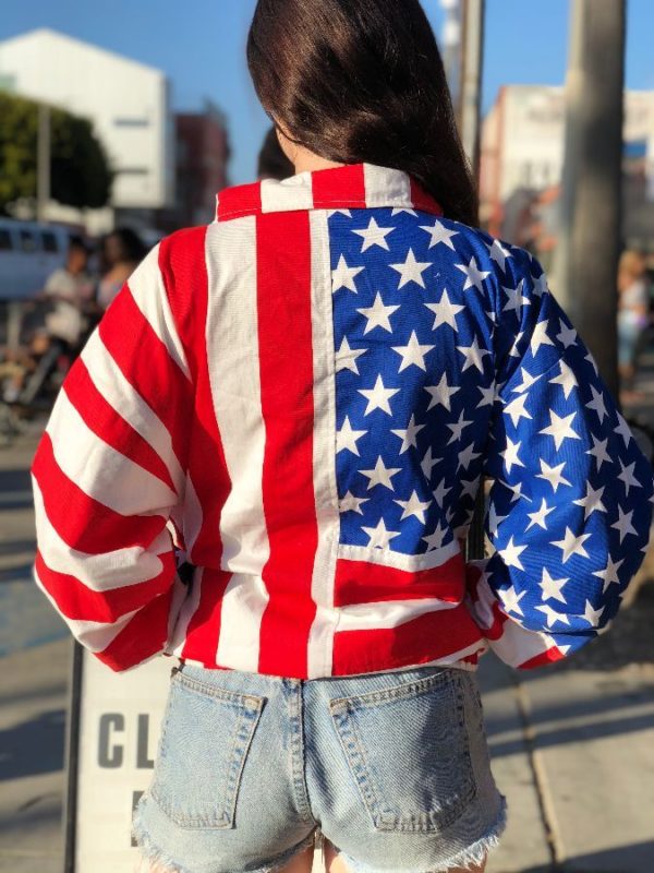 JACKET W/ AMERICAN FLAG PRINT ZIP-UP