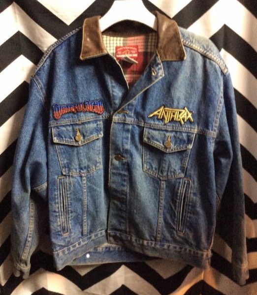 JACKET Denim Band Patches Grateful Dead Anthrax Offspring Kurt Cobain Leather Collar