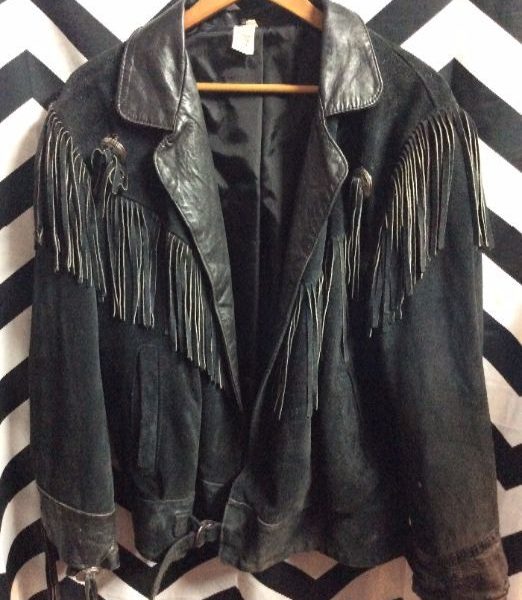 SUEDE LEATHER JACKET W/FRINGE & CONCHOS