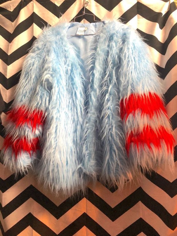 JACKET LONG FAUX FUR W/ STRIPE SLEEVES