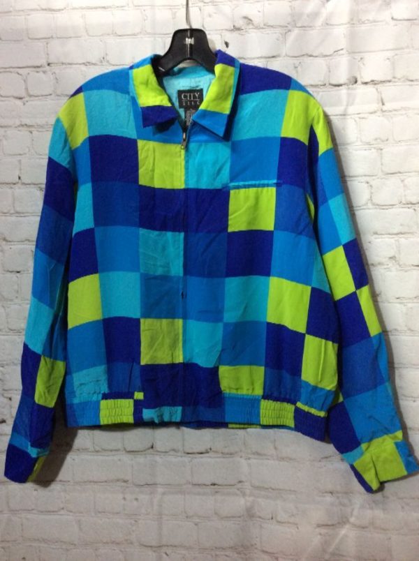 JACKET SILK W/ SQUARE PRINT IN COLOR-BLOCK DESIGN