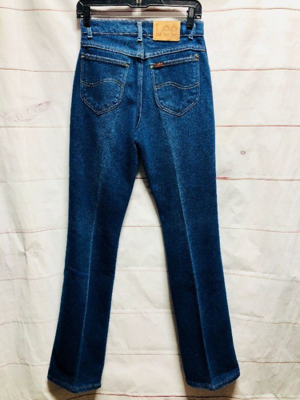 Lee denim jean pants, zip-up, high waist, stretch fabric, front & back pockets, dark blue