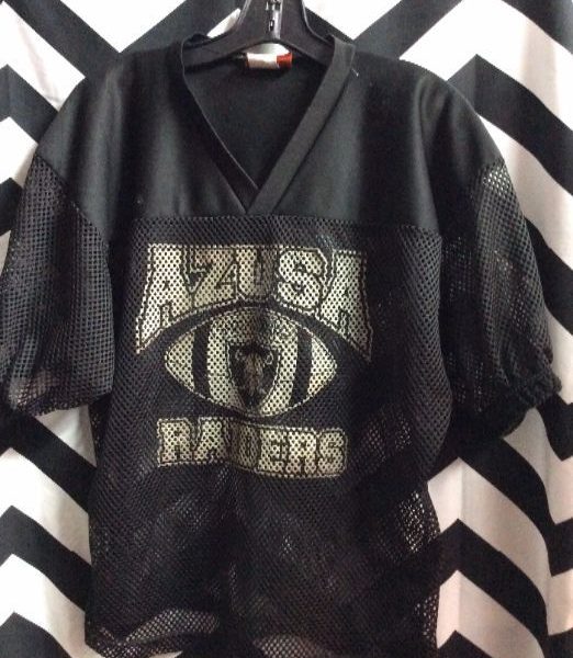 Football jersey, Azusa Raiders, Gonzales, mesh fabric, screen printed lettering, black/white, size M