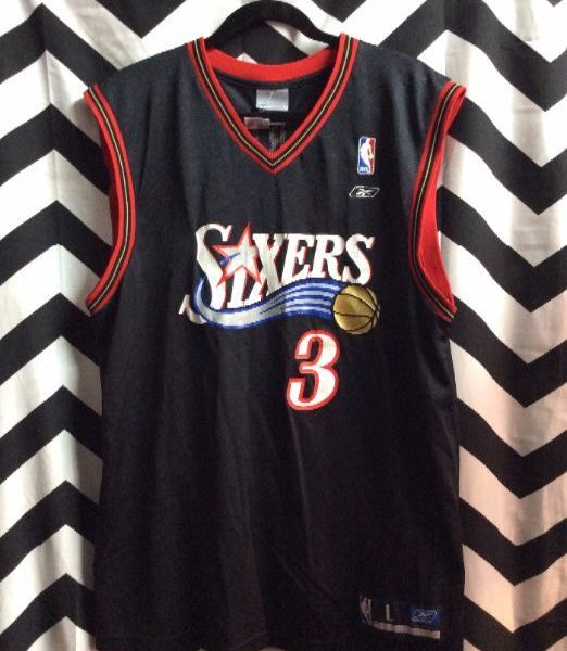 Reebok basketball jersey, Sixers, Iverson #3, screen printed full front & back, black/red/white, size L