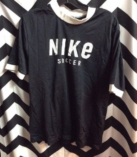 Nike ringer T-shirt, soccer jersey, screen printed lettering, black/white, size S
