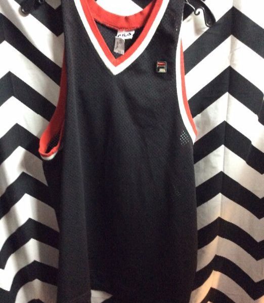 RARE CLASSIC RETRO FILA BASKETBALL JERSEY, MESH, RINGER, BLACK/RED/WHITE, SIZE XL