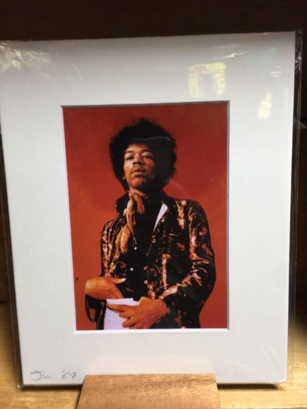 RAY RAE mounted photograph, Jimi Hendrix, hand in pants, white/black/rust/tan/brown, size 5″ x 7″