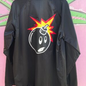 Joe Camel hard pack windbreaker, zip-up, screen print full back design, black, size L