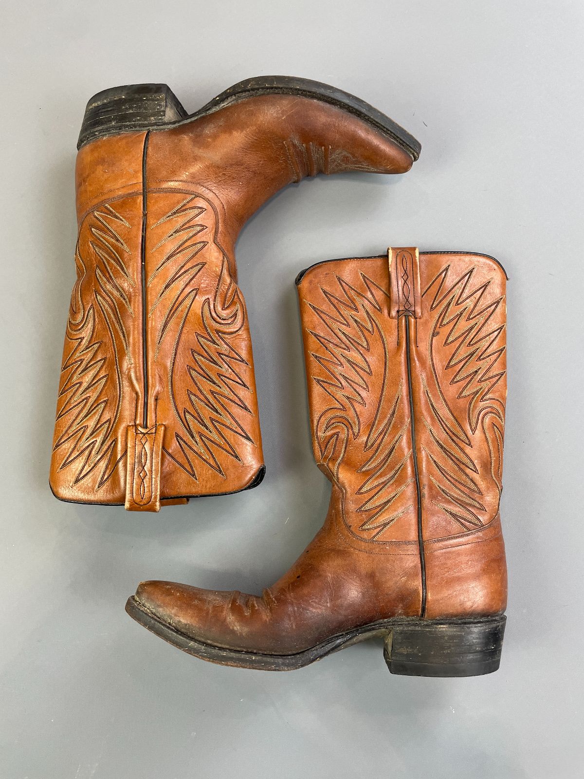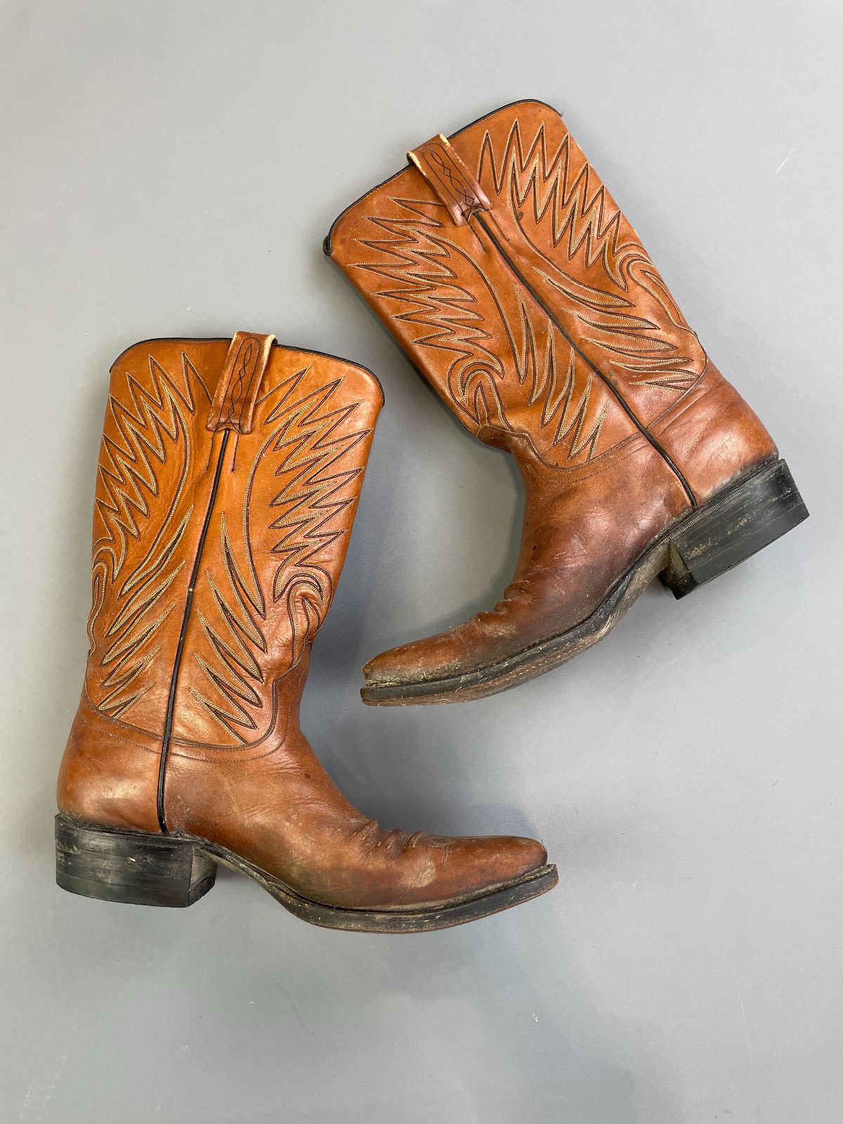 KILLER! MADE IN SPAIN!! STITCHED LEATHER POINTED TOE COWBOY BOOTS