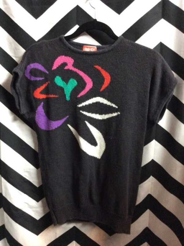 Pullover sweater, knit, short sleeve, bold graphic design, black/white/purple/red/pink/green